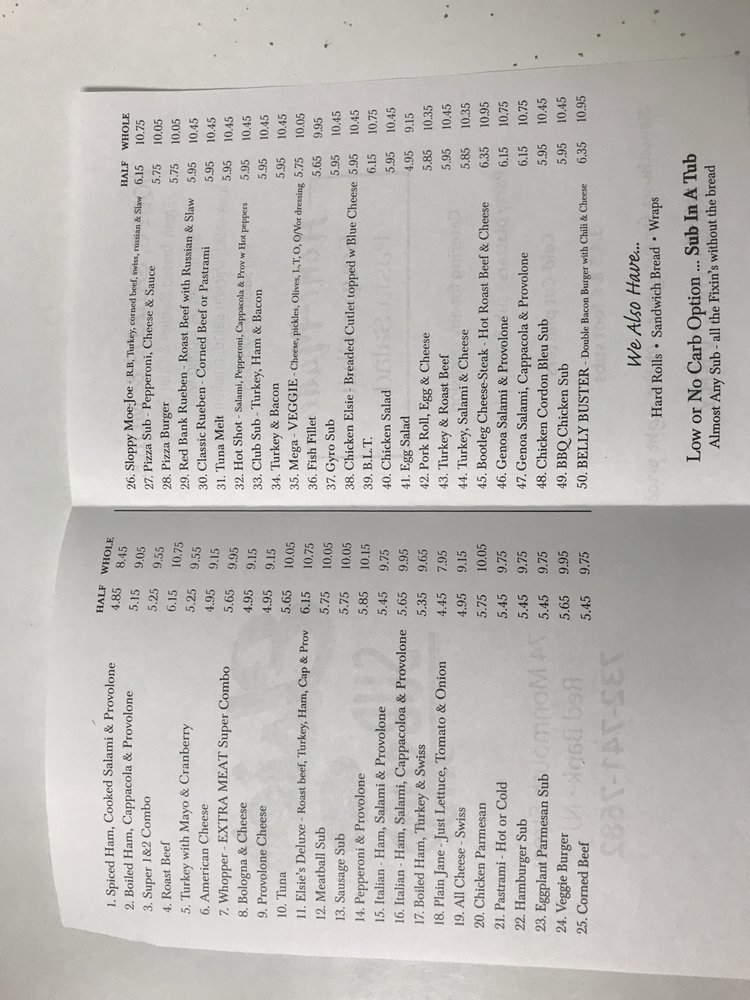 Elsie's Sub Shop, located in Red Bank, NJ, is a hidden gem offering a variety of delicious sandwiches, salads, and soups. Their menu boasts homemade chili soup, fresh garden salads, and a selection of half subs packed with high-quality meats and cheeses. The standout item is the "pickle sub," a unique twist on a classic sandwich that has received rave reviews from customers. With a welcoming atmosphere and attentive staff, Elsie's Sub Shop provides a memorable dining experience. Whether you're a local or just passing through, this establishment is worth a visit for a satisfying meal that won't disappoint.